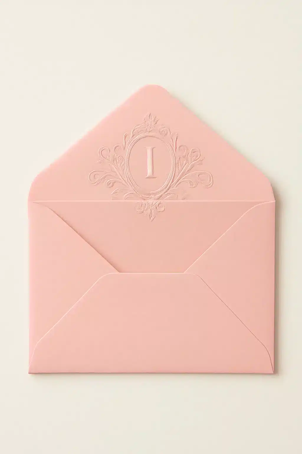 These luxurious embossed monogram envelopes, available in blush pink, burnt orange, and teal, are the perfect addition to your wedding invitations or special event stationery. Featuring intricate, raised designs and a soft matte finish, these envelopes offer a sophisticated and elegant touch to your important announcements.
