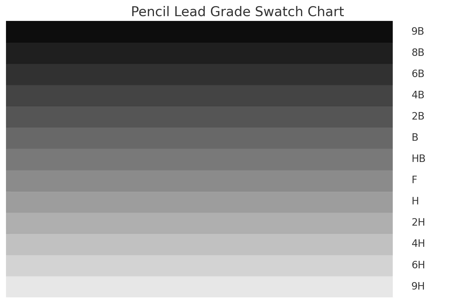 Some manufacturers extend the scale to extreme ends (e.g. 10H, 12B) to provide more granular tonal control for artists.