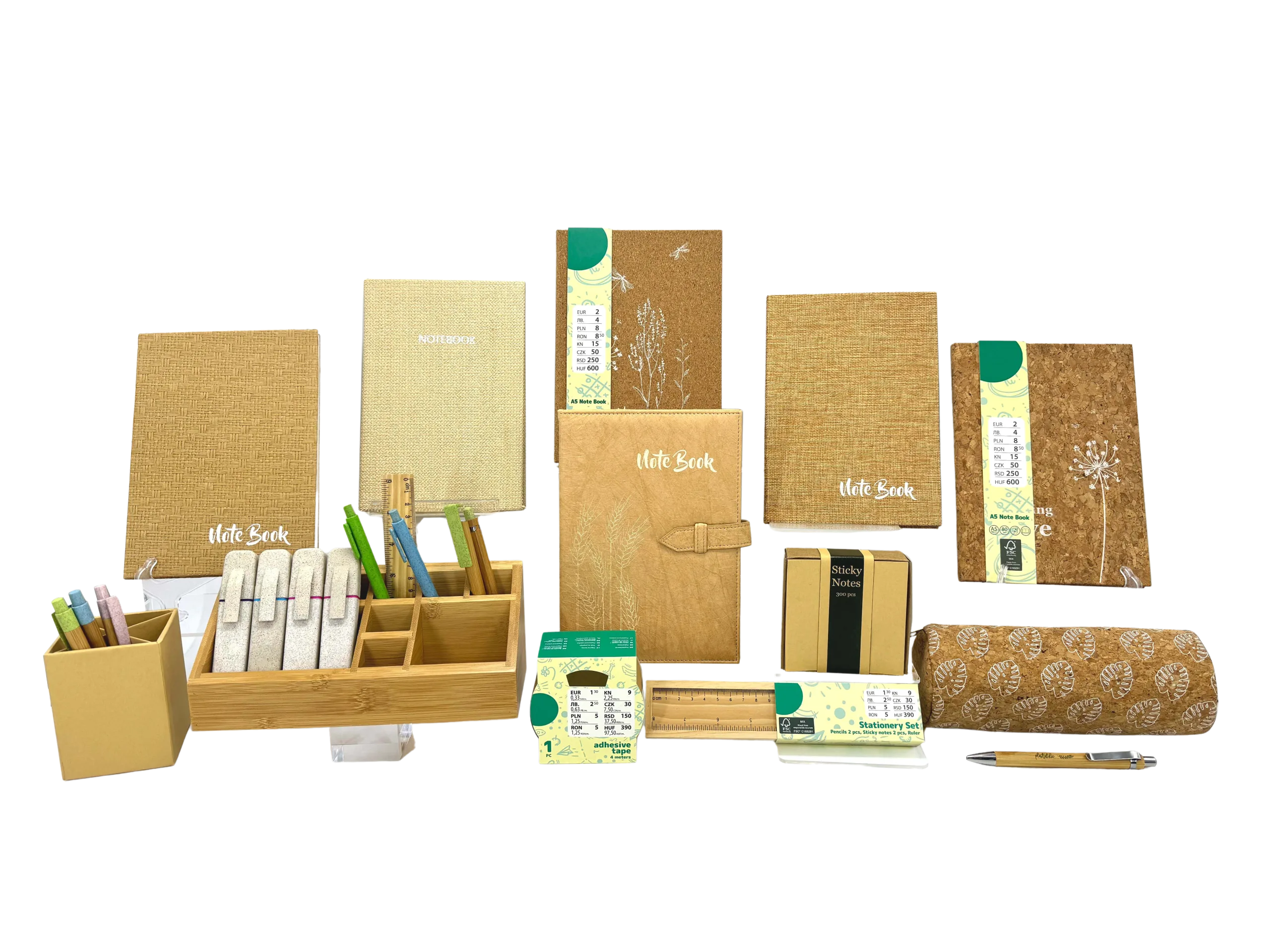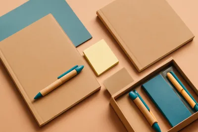 Von Notizbücher aus Kraftpapier, Bambusstifte, Haftnotizen, Papiermappen zu GeschenksetsUnsere Öko-Kollektion eignet sich für verschiedene Einzelhandels- und Werbezwecke.