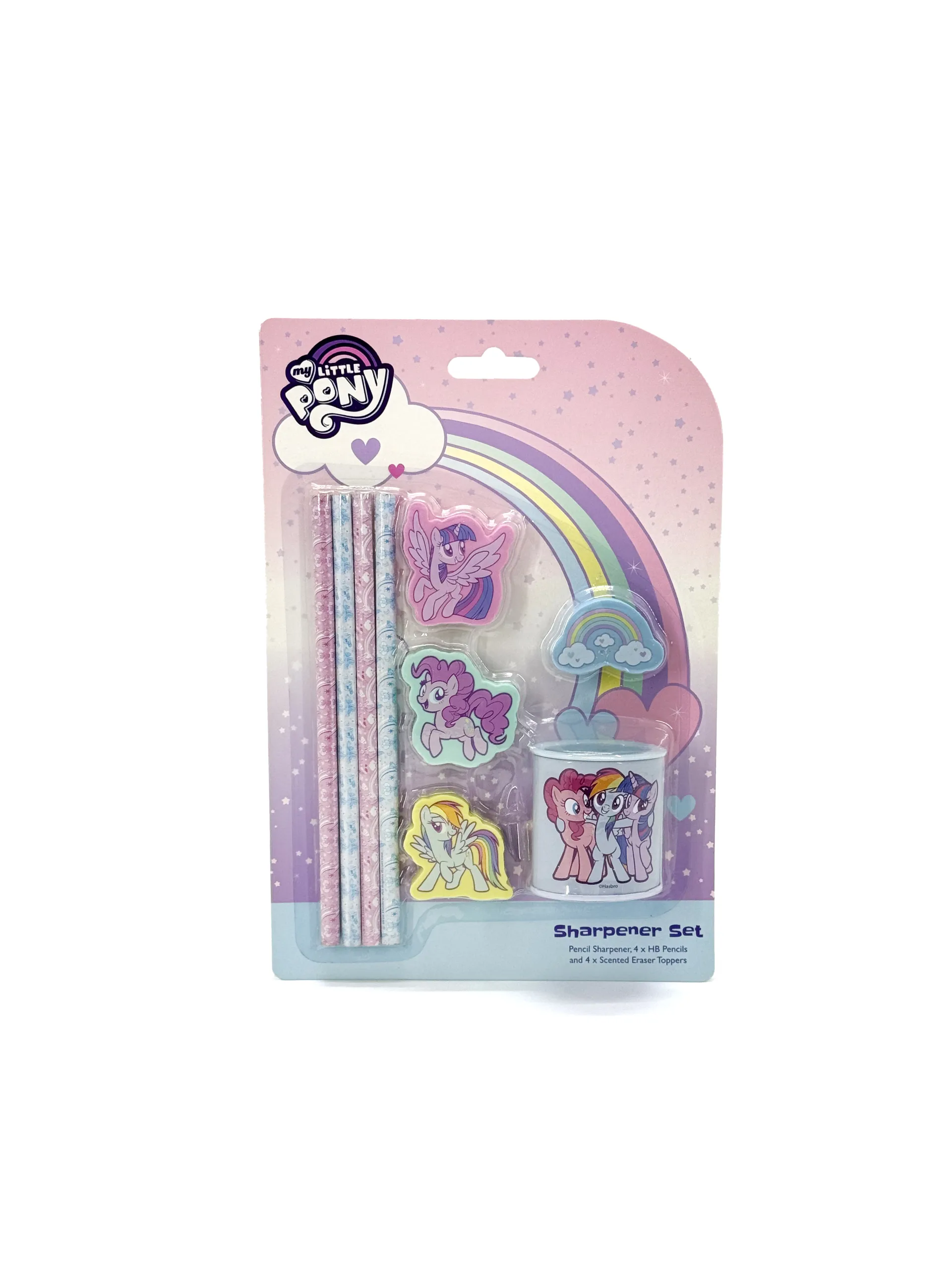 Juego de sacapuntas My Little Pony - 4 lápices, 4 gomas de borrar y sacapuntas