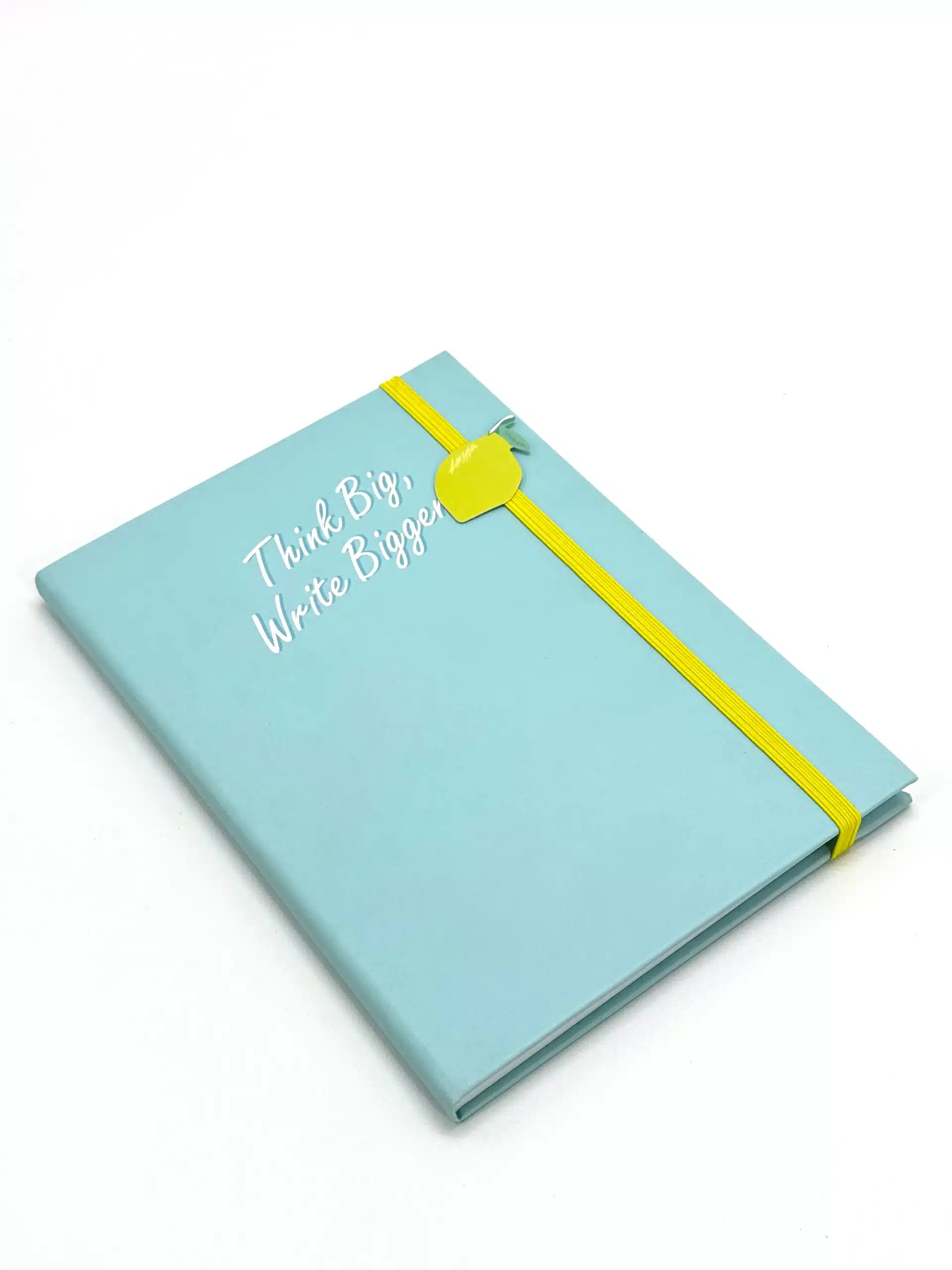 Améliorez votre expérience d'écriture avec cet élégant carnet A5 en PU à couverture rigide dans une finition bleu aqua rafraîchissante. Avec la phrase de motivation "Think Big, Write Bigger" et un élastique jaune vif rehaussé d'une breloque en forme de citron, ce carnet est aussi fonctionnel qu'accrocheur. Idéal pour tenir un journal, prendre des notes ou planifier au travail, à l'école ou en déplacement.