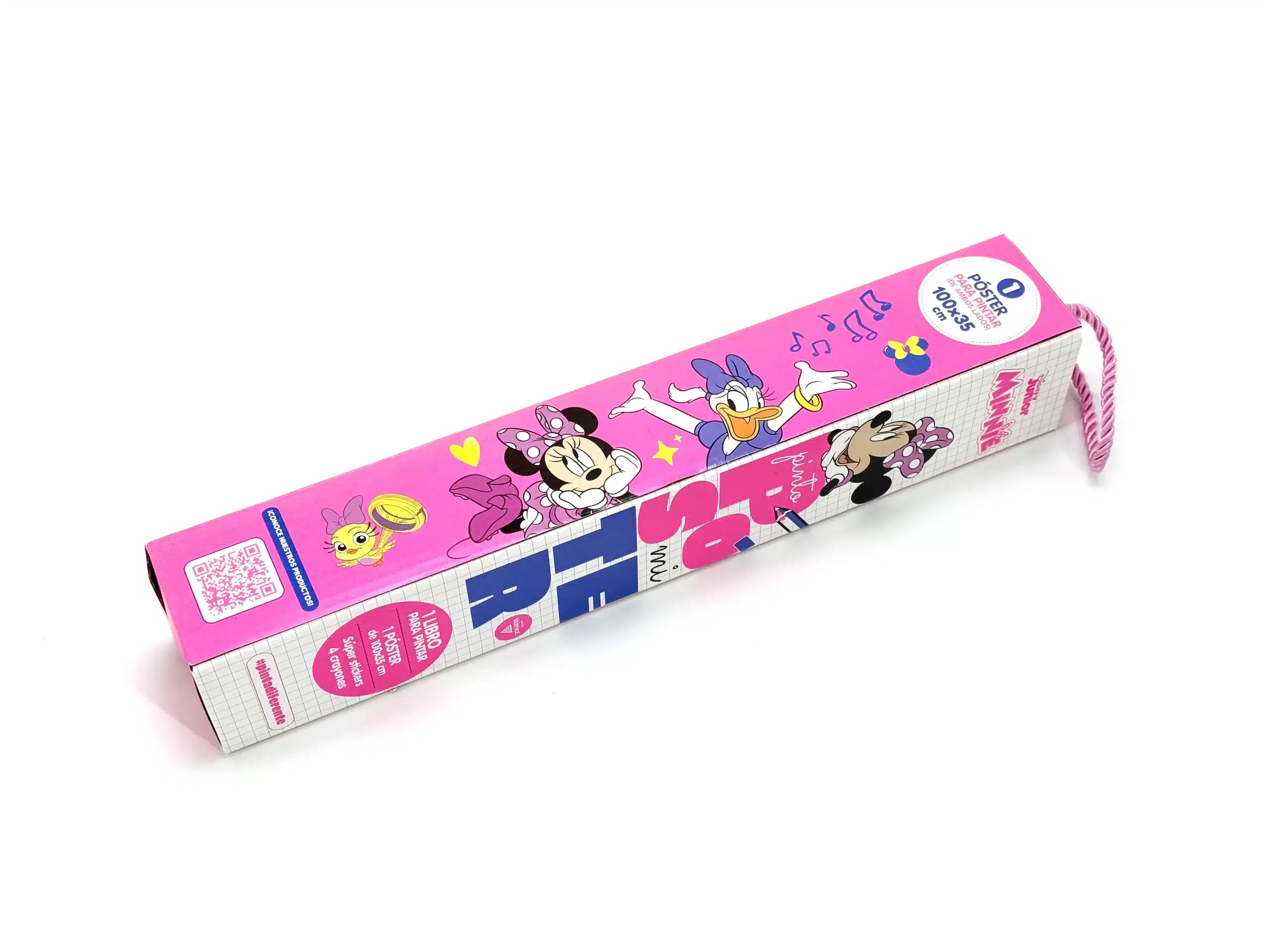 Laat je creativiteit de vrije loop met deze Minnie Mouse Poster Kleurenset! Deze set bevat een gigantische poster van 100×35 cm met Minnie Mouse, 4 levendige krijtjes, superstickers en een kleurboek. Perfect voor jonge kunstenaars, een leuke manier om je ruimte te versieren en Minnie's wereld tot leven te brengen. Deze set is ideaal voor thuis of op school en biedt urenlang vermaak terwijl de fijne motoriek wordt verbeterd door middel van kleuren en creativiteit.