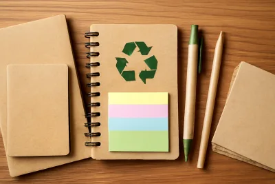 We bieden een breed scala aan kantoorbenodigdheden: notitieboeken, dagboeken, plakbriefjes, mappen, pennen, etuis, geschenksets, kantoor organizers en nog veel meer - volledig aanpasbaar aan jouw wensen.