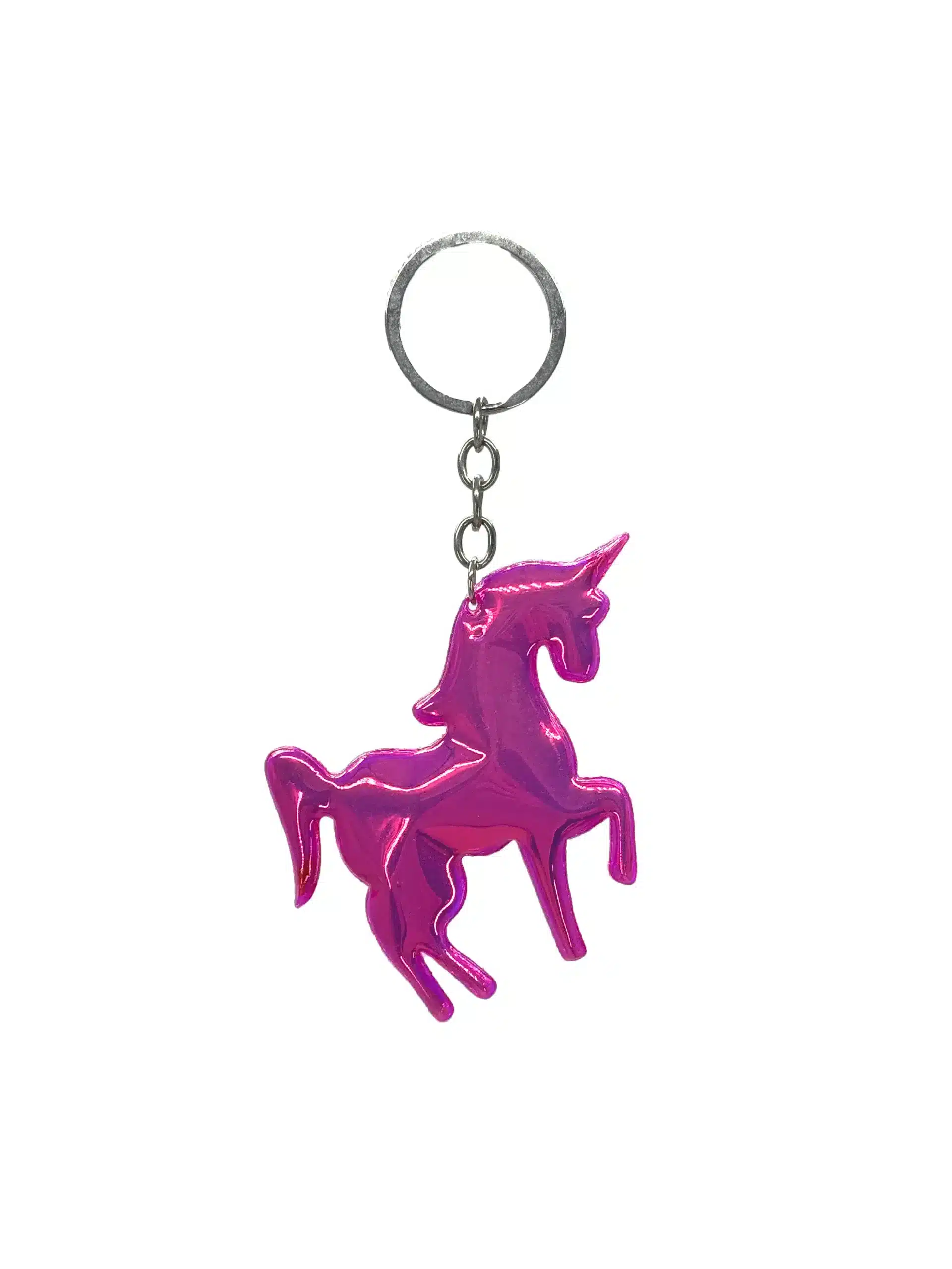 Add a touch of whimsy to your keys or bag with this vibrant pink unicorn keychain. Perfect for kids, teens, or anyone who loves unique and playful accessories. Its shiny metallic finish and durable design make it a fun and practical addition to any set of keys, backpacks, or purses.