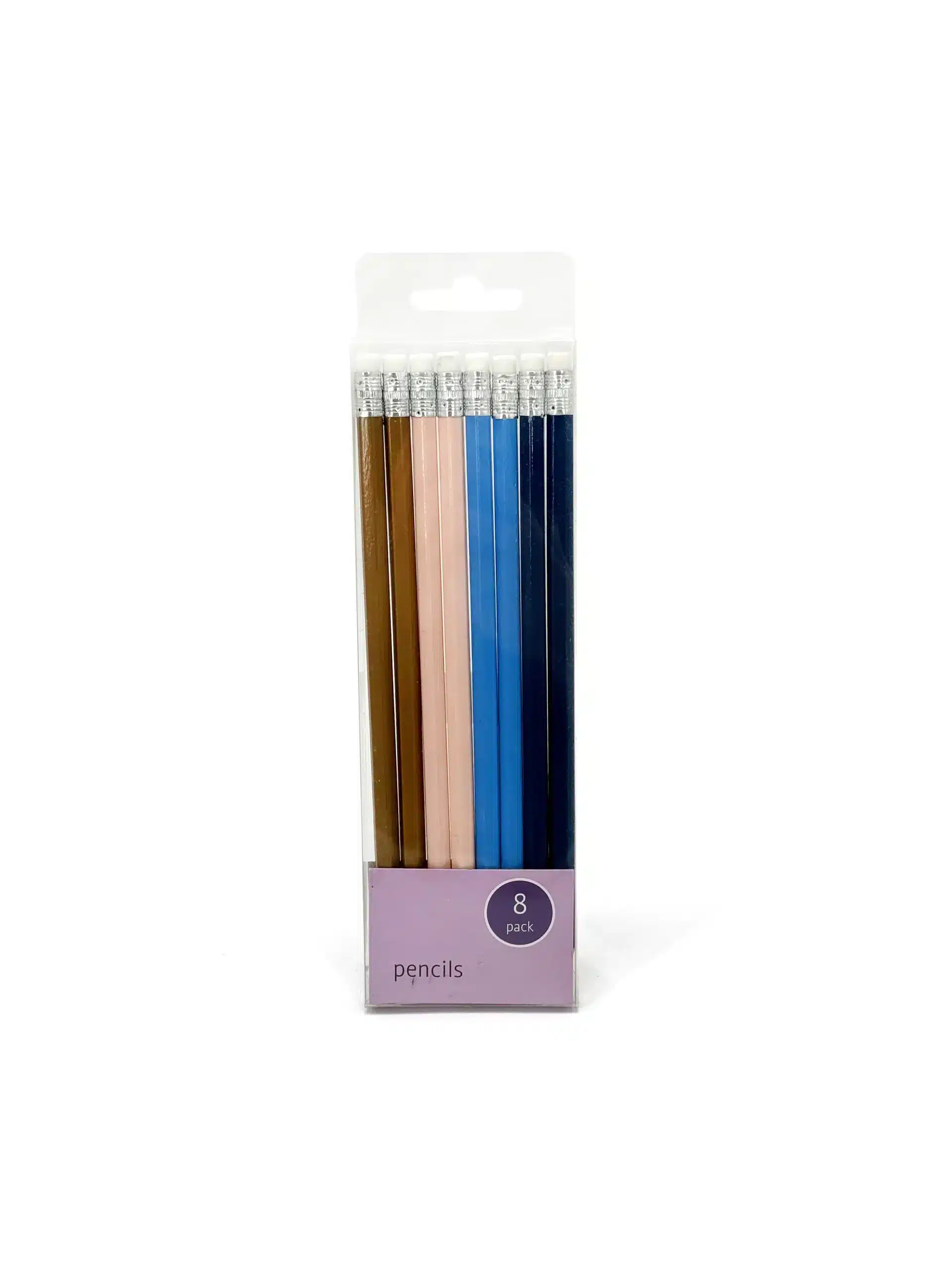 This set of 8 elegant colored pencils features a beautiful mix of earthy tones and blues, including rich brown, soft pink, vibrant blue, and deep navy. Perfect for school, office use, or creative projects, these pencils offer smooth writing and sketching. The high-quality wood ensures durability, while the erasers at the top make for easy corrections.