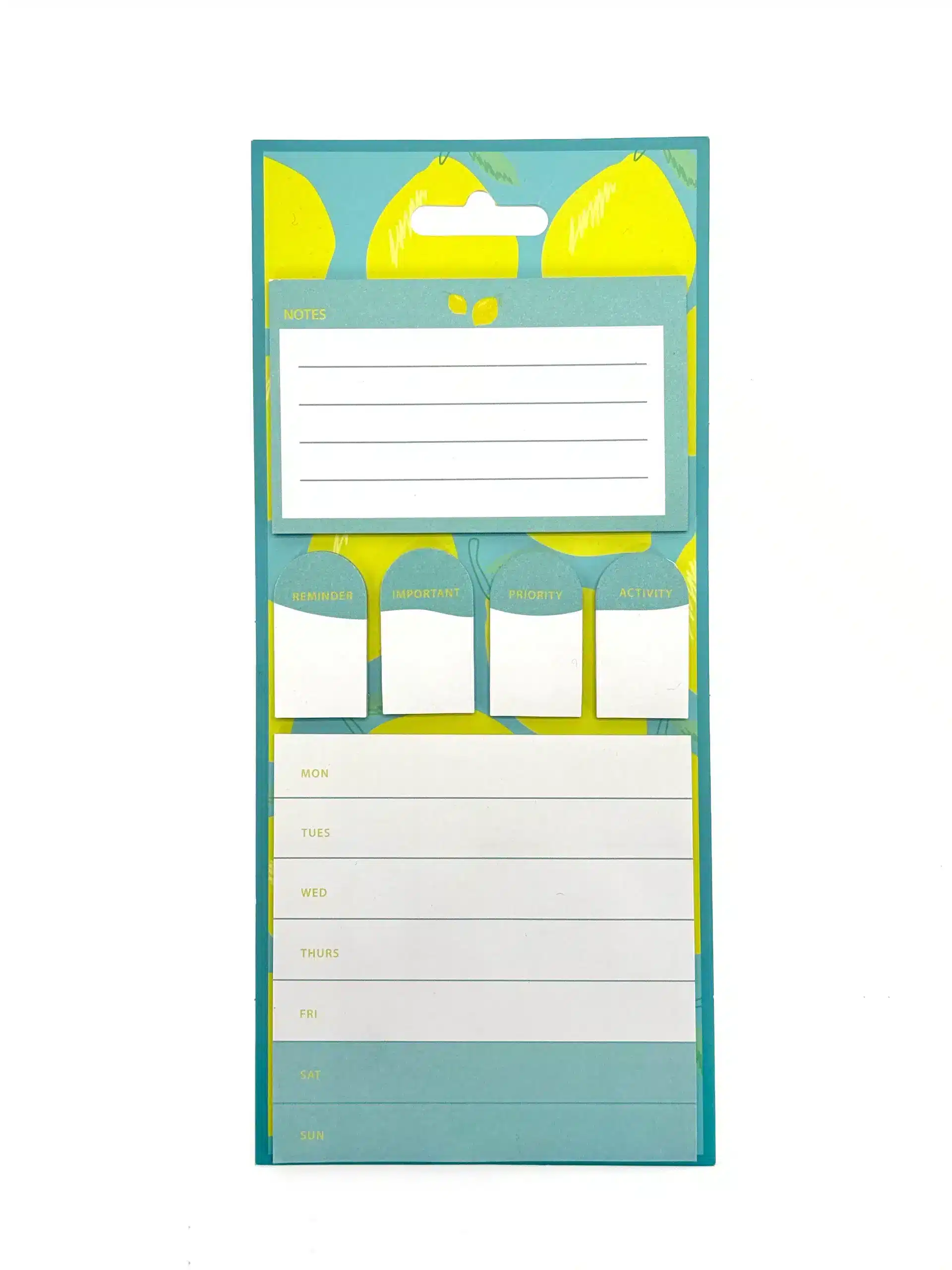Stay on top of your schedule with this vibrant lemon-themed sticky notes set. Featuring sections for daily tasks, reminders, priorities, and activities, it’s a fun and practical tool to keep your week organized. Perfect for desks at home, classrooms, or office environments, this set brings a burst of citrus cheer to your planning routine.