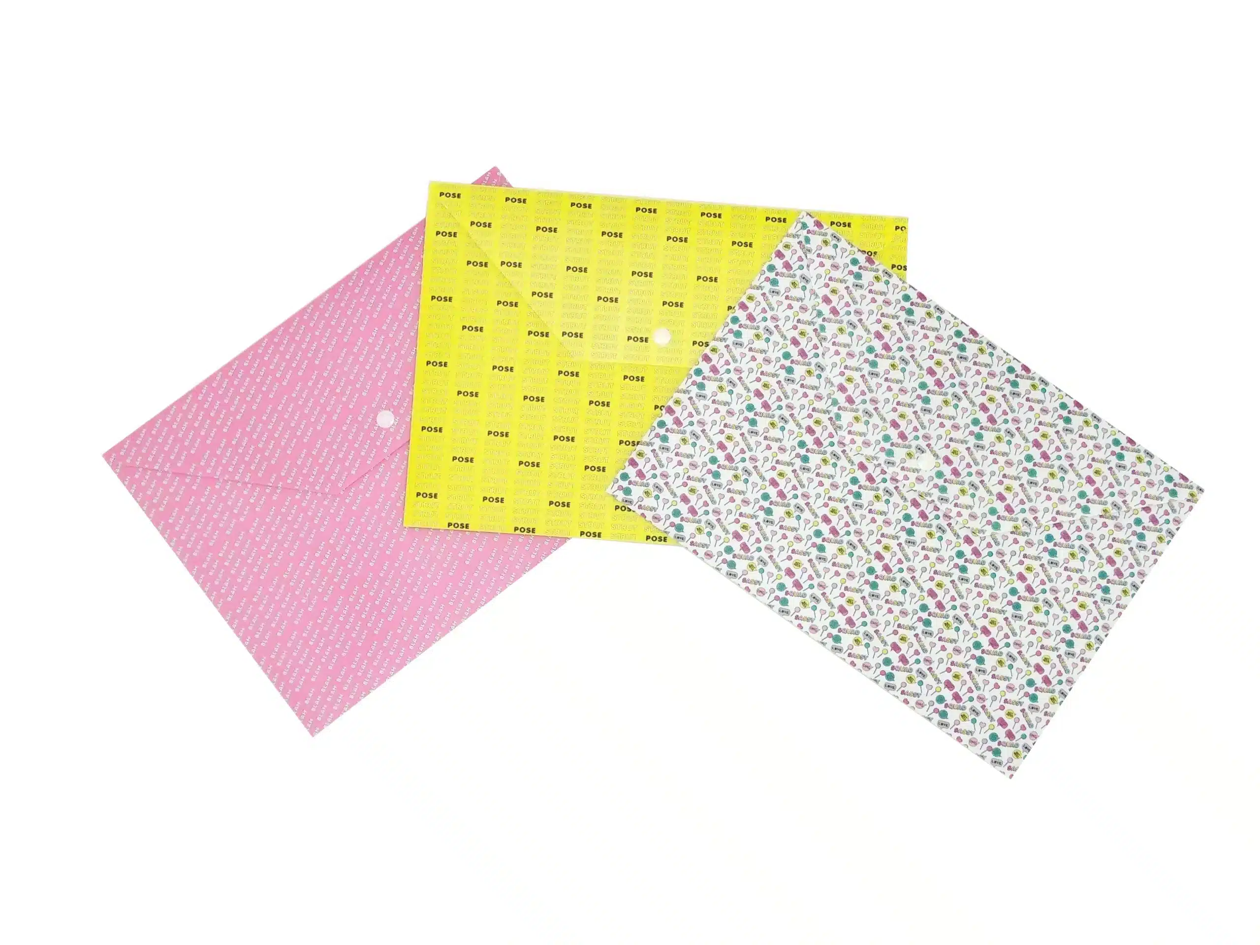 This set of three stylish document bags in pink, yellow, and white offers a fun yet practical way to organize your papers at the office, school, or home. Each bag features a secure closure, keeping your documents safe and neatly stored. Perfect for everyday use in various settings!